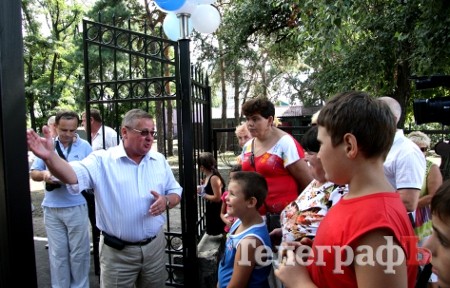 Открытия сквера ожидали посетители возле ворот: в основном, это мамы с детьми, которым не терпелось порезвиться на детской площадке. Ее в свое время установила компания «Рошен», а силами водоканала она была отремонтирована, покрашена.