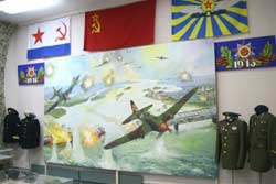 Одним із героїв виставки є Дольніков (прототип героя повісті Шолохов “Судьба человека”), якого збили у районі Кривого Рогу, і якому в полоні наливали, а він казав “Русские после первой не закусывают”. Драматична доля льотчика Дєвятаєва із дивізії Покришкіна. Він був збитий під Львовом 1944 року, потрапив у полон, викрав німецький бомбардувальник разом із полоненими. Зухвалий подвиг, якому не повірили. Дали вісім років таборів, потім Зірку Героя і він потрапив до Книги рекордів Гіннесса. Цікава розповідь про “сталінських соколів”, про досягнення німецьких льотчиків (відкриття для багатьох): Герой Іван Кожедуб збив 62 літаки противника, а на рахунку німця Еріха Хартмана – 352 збитих літака (348 – радянських).