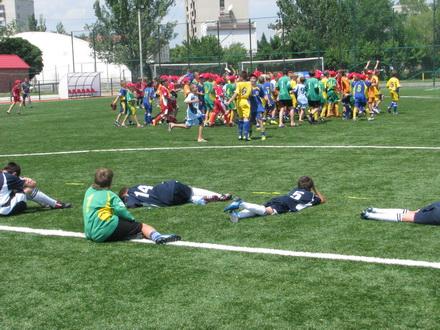Большую часть поединка инициативой владели львовяне, которые на 11-й минуте вышли вперед – отличился Остап Малашевский. Однако не прошло и двух минут, как Денис Ткаченко, точно пробив головой после подачи со штрафного, восстановил равновесие. Во втором тайме львовяне нагнетали обстановку у ворот соперников еще больше, но материализовать его в гол все никак не выходило. Однако, на 39-й минуте бесспорно лучший игрок финала, капитан львовян Маркиян Лесько красивейшим ударом из-за штрафной все же вырвал победу: ударившись о перекладину, мяч влетел в сетку – 2:1. Львов – победитель турнира «Кожаный мяч», Кременчуг – серебряный призер. Разочарованию наших парнишек не было предела, ведь до серии пенальти оставалось всего ничего, какая-то одна минута