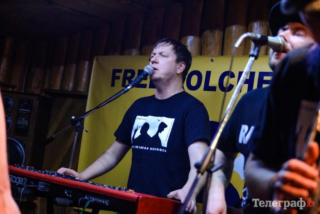 Страшенно приємно знову бути у Кременчуці, адже для нас це не просто місто, а місто особливе — ми тут неодноразово виступали і будемо виступати ще. У нас тут завжди якісь такі спеціальні виступи. Ми сьогодні їхали Кременчуком і проїжджали повз площу, на якій колись давали концерт, і захопили її навіть, на 35 секунд. Був у нас такий досвід. А сьогодні ми до вас прихали в межах нашого #ПСИхотуру і Кременчук, якщо я не помиляюся, у нас чи то восьме, чи то дев'яте місто. До цього ми грали на Західній Україні, останній концерт у нас був у Полтаві, а після вас поїдемо, власне, по Центру, а далі — на Південь і Схід. У нас, крім того, що це є такі комерційні концерти, на які публіка купує білети, приходить і слухає нас, ми до своїх виступів долучили ще декілька ініціатив: по-перше ми вирішили підтримати наших політв'язнів і намагаємося якось звернути увагу нашого суспільства на цю проблему.