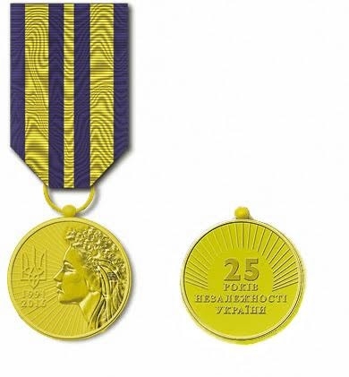 Згідно з указом Президента України від 22 серпня трьох кременчужан нагородили ювілейною медаллю «25 років незалежності України». Медаль присвоюється за значні особисті заслуги у становленні незалежної України, затвердження її суверенітету та зміцнення міжнародного авторитету. А також за вагомий внесок у державне будівництво, соціально-економічний, культурно-освітній розвиток, активну громадсько-політичну діяльність, сумлінне і бездоганне служіння Українському народові.