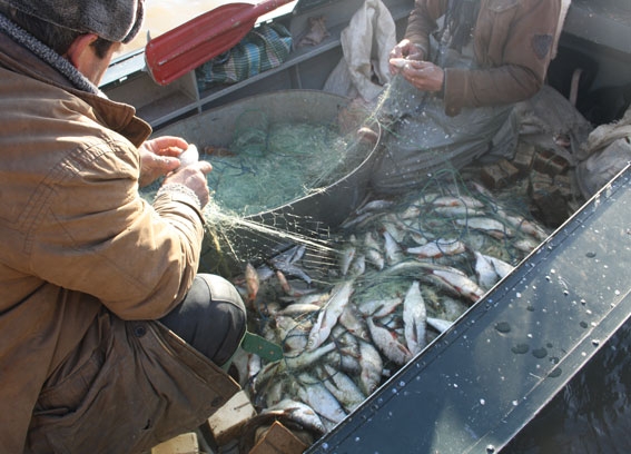 Двое мужчин наловили на сетку около 150 кг рыбы