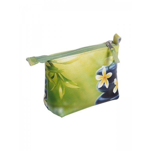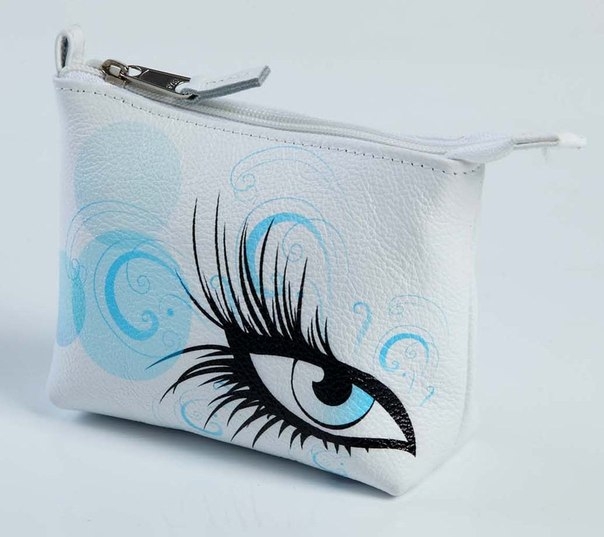 Косметичка. Застежка на молнию, шелковая подкладка. Декоративная многоцветная печать по коже