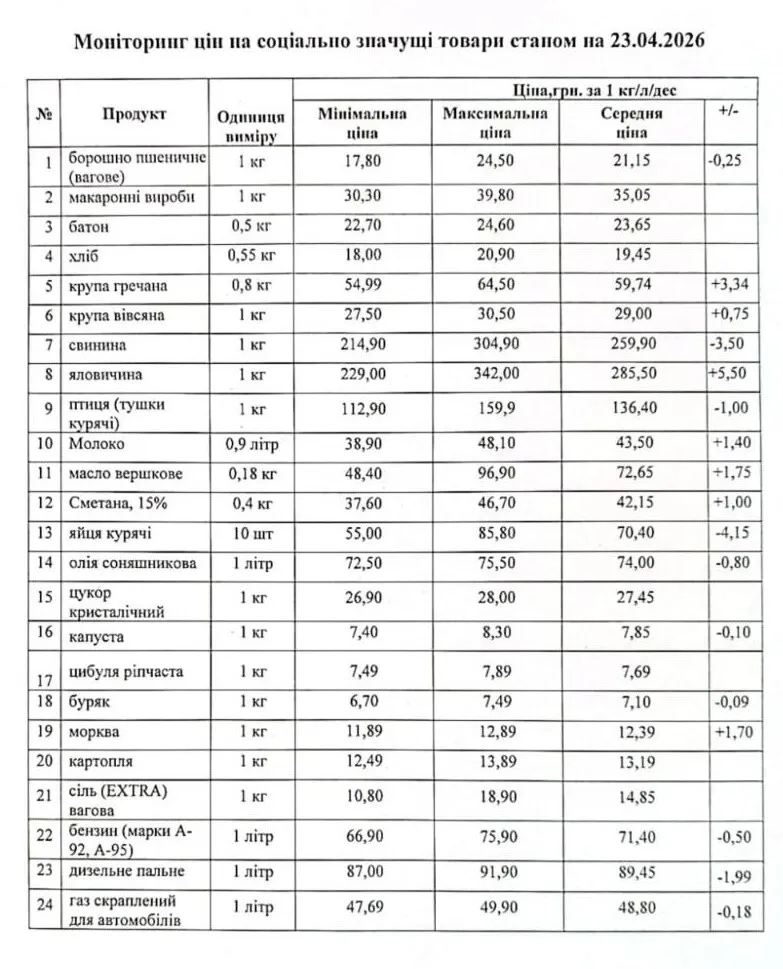 Кременчуцьке районне управління Держпродспоживслужби провело моніторинг цін на соціально значущі товари у торгівельних закладах району станом на 23 квітня. З цією інформацією наше видання ознайомила Кременчуцька районна військова адміністрація.