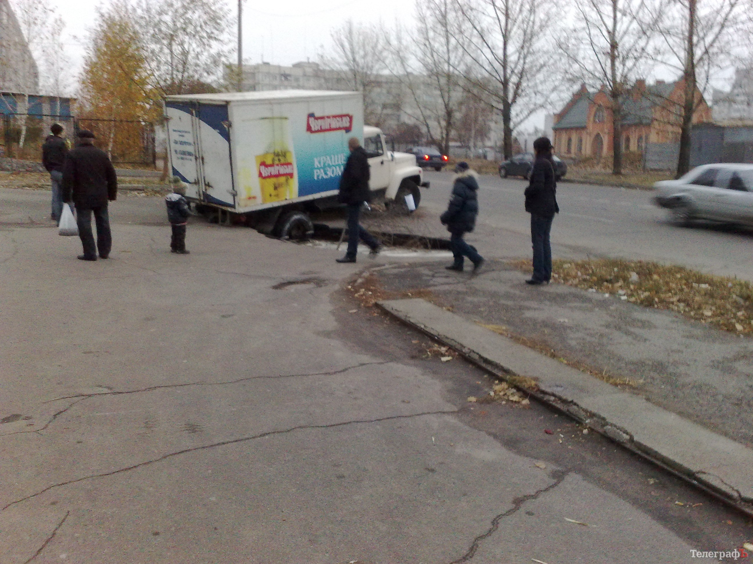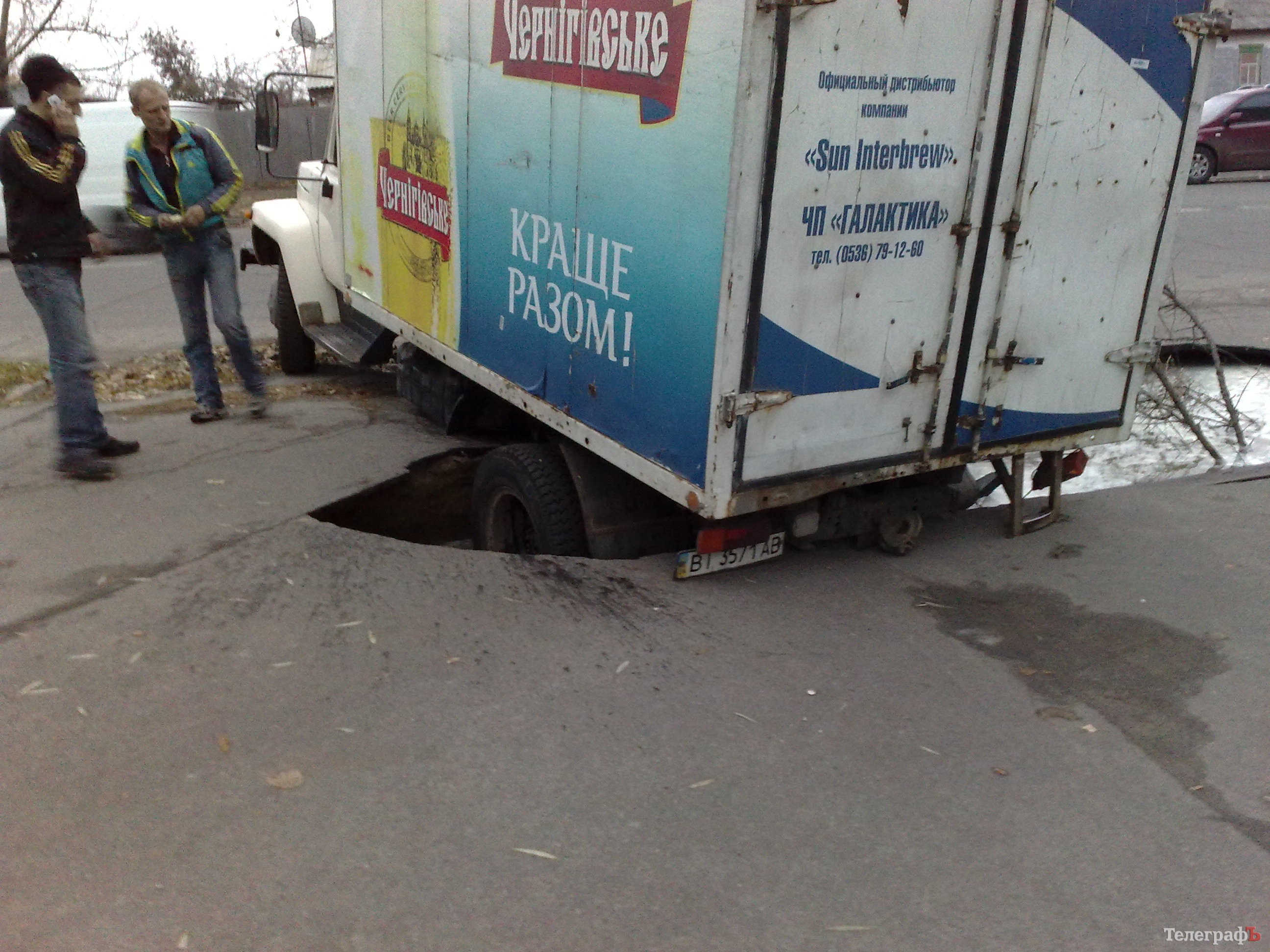 22 ноября на дороге, ведущей с улицы Щорса во двор дома, провалился грузовик ГАЗ из доставки пива «Черниговское». Фото прислал читатель «Телеграфа». Ранее мы писали о том, что на этой улице провалился асфальт.