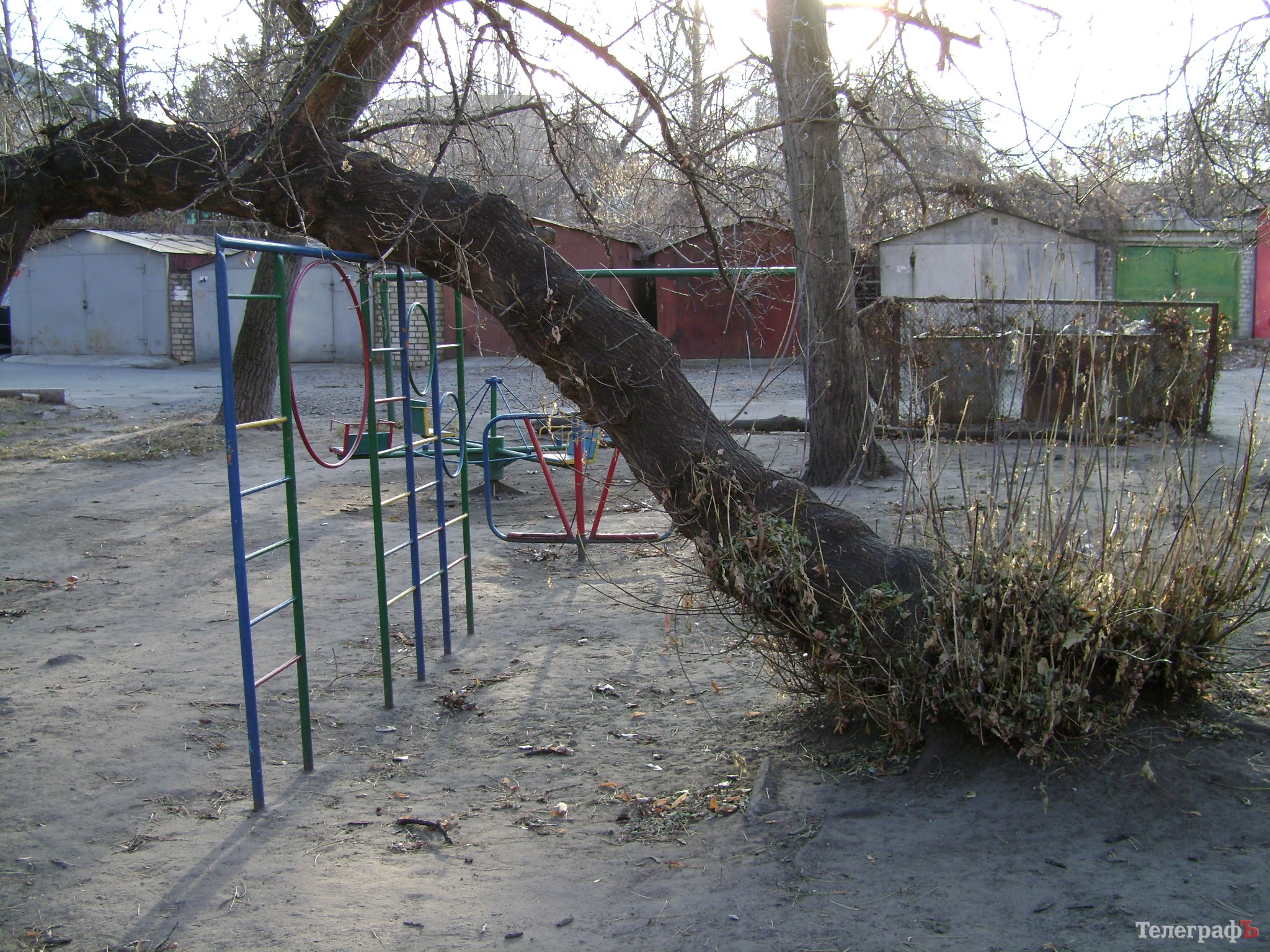 Также, во дворе этого дома находится ещё одно небезопасное дерево. Оно уже не один год нависает над детской площадкой. По словам начальника отдела контроля за оперативной обстановкой в городе Юрия Войтенко, управляющей компании, которая обслуживает этот дом, уже дано задание обследовать дерево и принять меры.