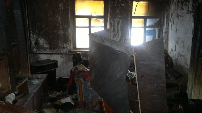 Огонь уничтожил в доме два кресла, повредил другую мебель, в комнате закопчены стены и потолок. Причина пожара устанавливается.