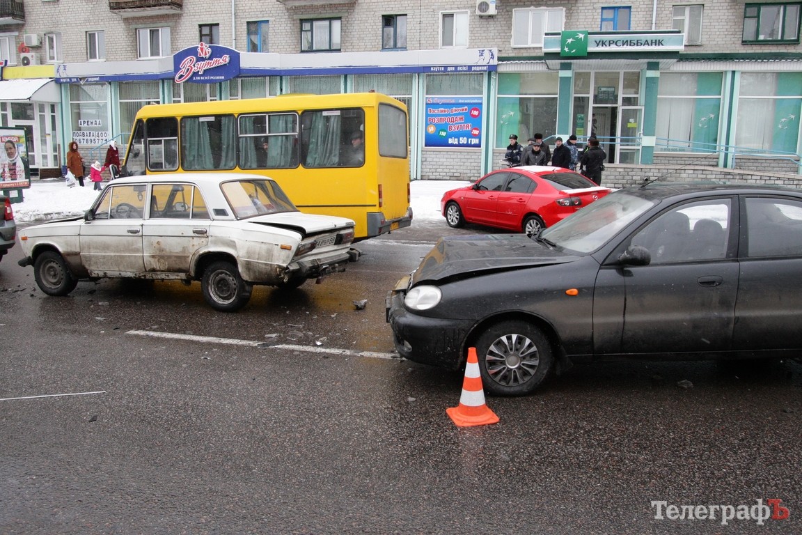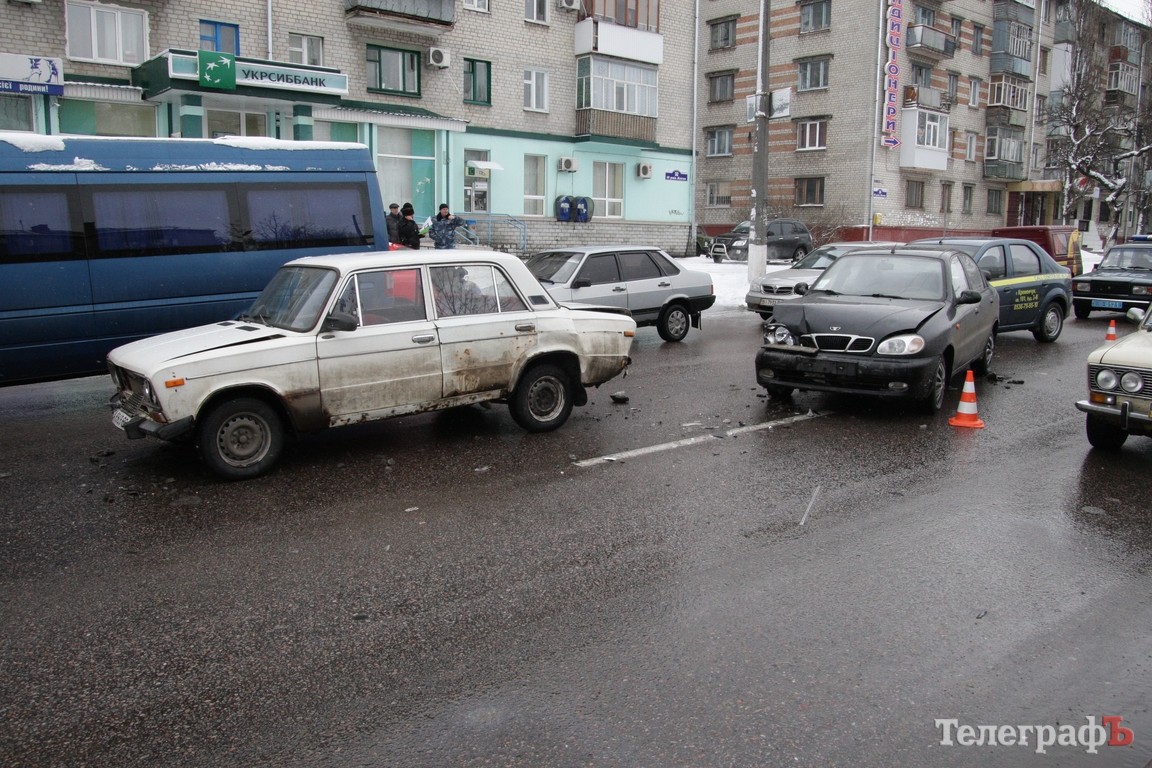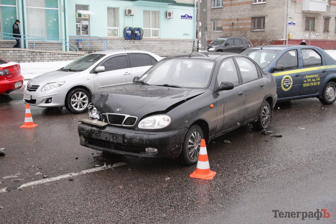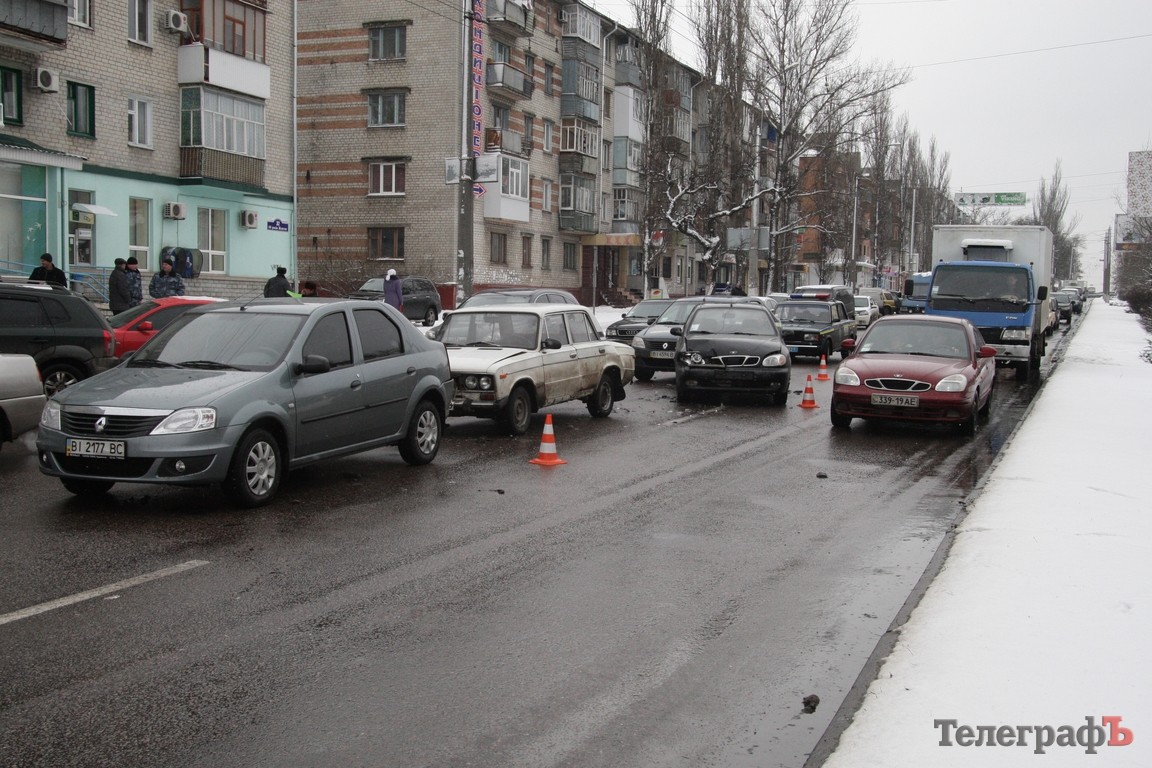 В Кременчуге, в районе мемориала «Вечно живым», около 11.00 произошло ДТП. Столкнулись 4 автомобиля — 2 Renault Logan, ВАЗ-2106 и Daewoo Lanos.