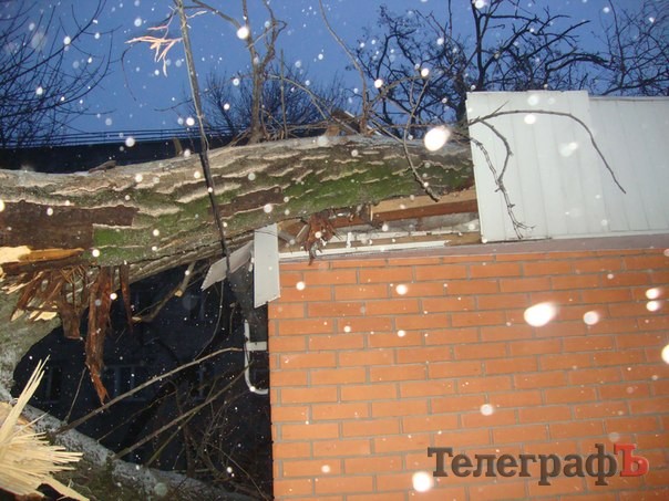 Из-за сильного ветра в Кременчуге большое дерево завалилось на магазин рядом с домом на ул. Первомайская, 19. Это произошло 23 марта около 17.00. Акацию вырвало с корнем.