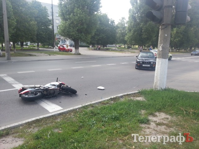 В Кременчуге сегодня, 7 августа, около 16.45, в районе остановки "Керченская" автомобиль BMW сбил спортивный мотоцикл. Об этом "Кременчугскому Телеграфу" сообщил читатель. Известно, что BMW и мотоцикл двигались в одном направлении - с Молодежного.