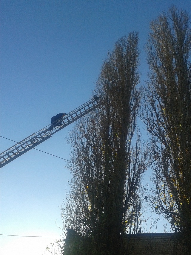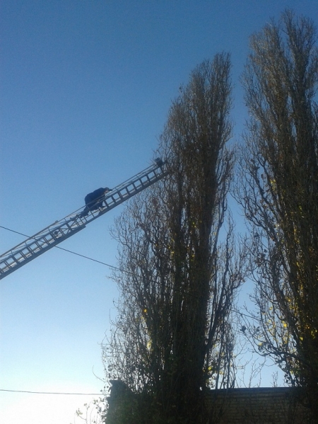 Вчера, 18 ноября, в обед, кременчугские спасатели выехали на улицу Чкалова, где на высоте около 10 метров кот застрял в ветках дерева и не смог самостоятельно слезть.
