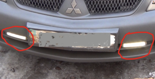 Передняя часть автомобиля. Адвокат утверждает, что у него установлены ходовые огни, а инспектор – что это никакие не ходовые огни.