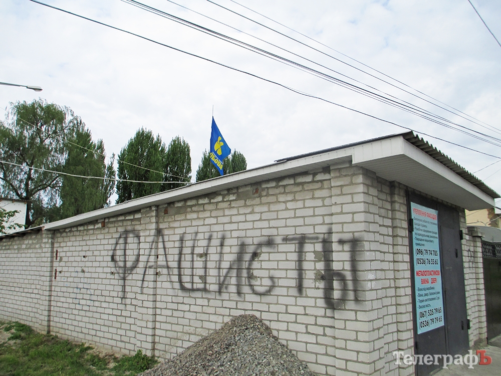 Сегодня утром, 29 апреля, кременчугские свободовцы увидели, что их бывший офис по пер. Вишневому обрисован свастикой и разными надписями.