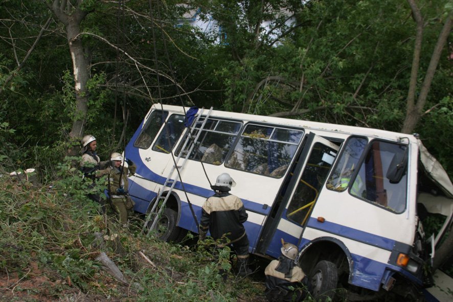 По предварительной информации, двигаясь в направлении села Засулье автобус, из-за технической неисправности (отказали тормоза), не справился с управлением и совершил столкновение с автомобилем «ЗАЗ», под управлением 41-летнего мужчины. В результате ДТП, автомобиль «БАЗ» съехал в кювет и перевернулся.