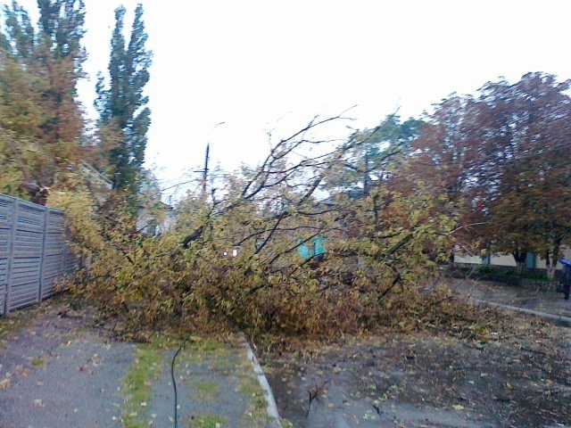 В Кременчуге 24 сентября с утра сильный ветер и дождь. Уже есть сообщения об упавших деревьях: на улице 60-летия Октября, 106, Льва Толстого 32/36, на перекрестке улиц Приходько и Кузнечной (на фото).
