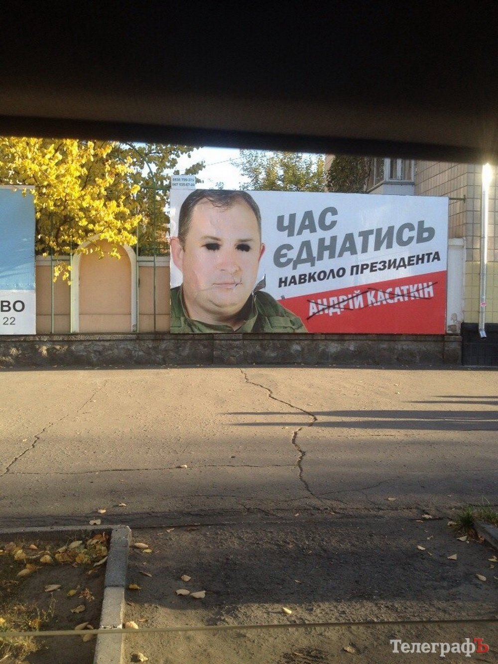 Кандидат в нардепы кременчужанин Андрей Касаткин задержал несовершеннолетнего, который забросал краской его билборд.