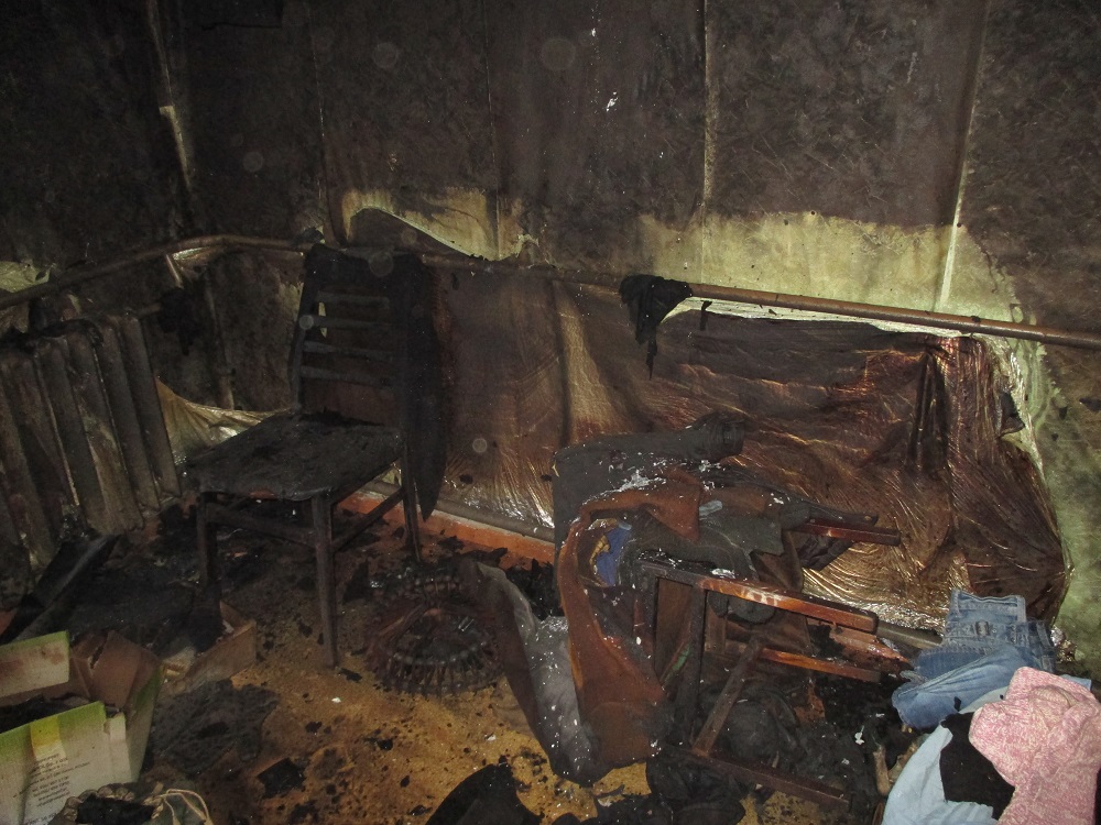 В результате пожара во флигеле сгорели двери, телевизор, шкаф, диван, повреждено перекрытие, выбиты окна и закопчены стены.