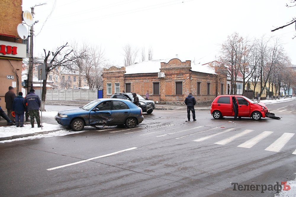 В Кременчуге на «мистическом» перекрёстке ул. Шевченко и Бутырина столкнулись три автомобиля – Daewoo Nubira, Daewoo Matiz и Hyundai Tucson. ДТП произошло 28 января около 10.00. Потерпевших, к счастью, нет, но автомобили получили механические повреждения.