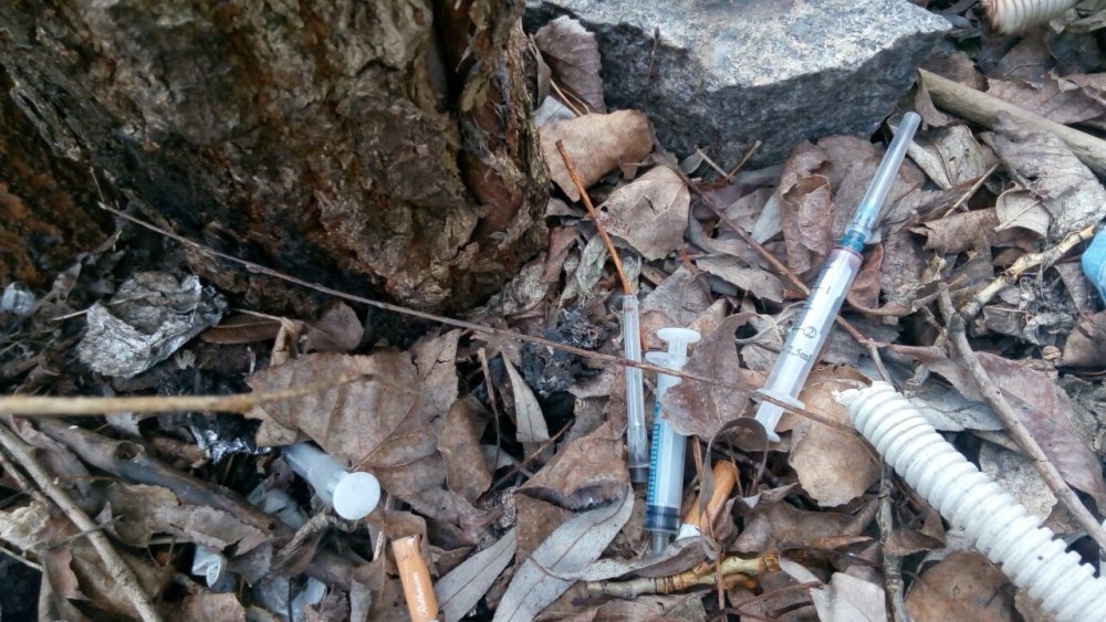 А поруч валяються використані шприци! Неймовірна кількість бляшанок і пляшок і папірців. Гидко те, що це наче великий і безкоштовний туалет.