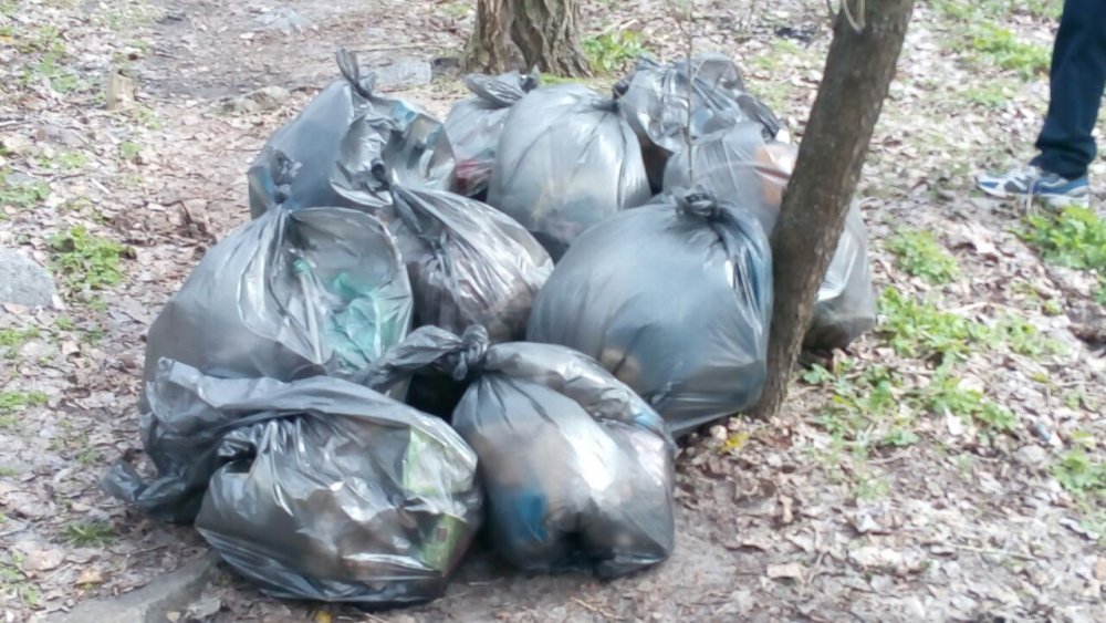 Активісти Кременчука прибрали територію Придніпровського парку, а зібране сміття принесли під стіни міської ради.