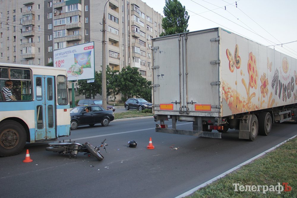 При виїзді з Маркетопта по вул. Лесі Українки в районі магазину Простор мотоцикліст в’їхав у фуру. Водія мотоцикла забрала швидка. За попередньою інформацією водій вдарився головою об фару великовантажного автомобіля.