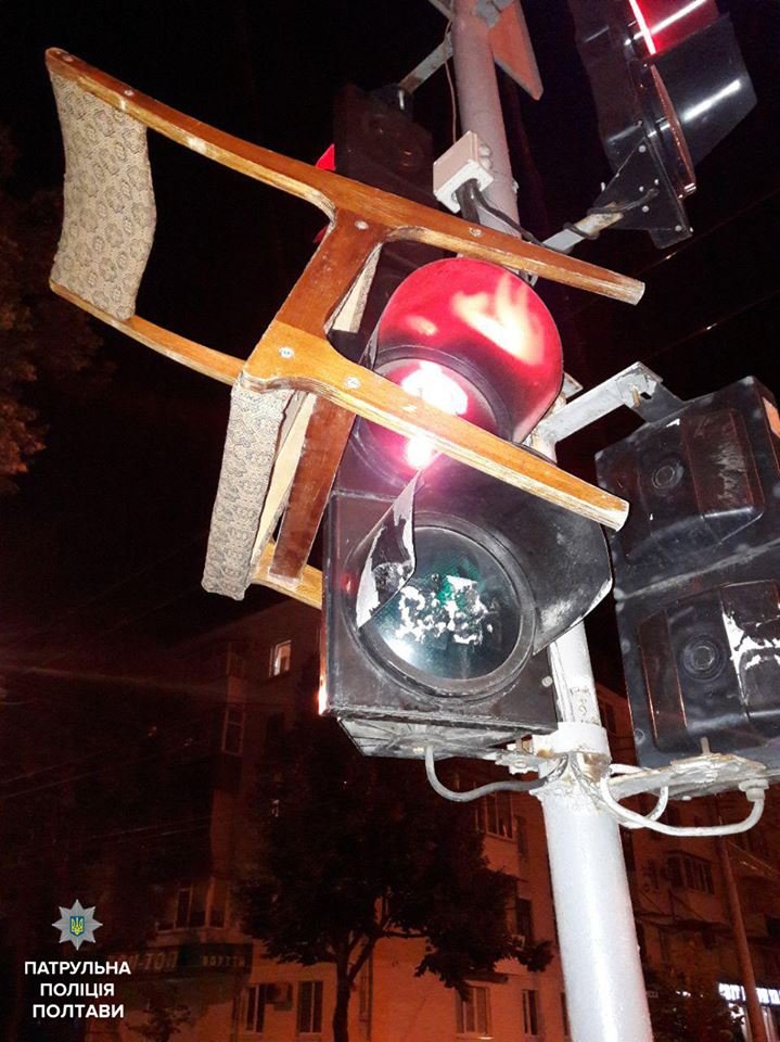 Патрулируя ул. Небесной сотни, патрульные заметили молодого человека, который бил стулом светофор. Когда копы подошли к нему, невооруженным глазом было заметно, что дебошир находится в состоянии алкогольного опьянения.
