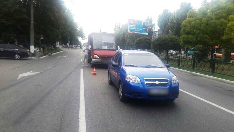 Маршрутка «догнала» учебную Chevrolet Aveo. По предварительной информации, никто не пострадал.