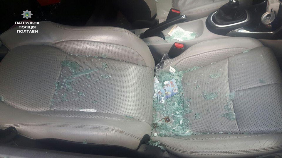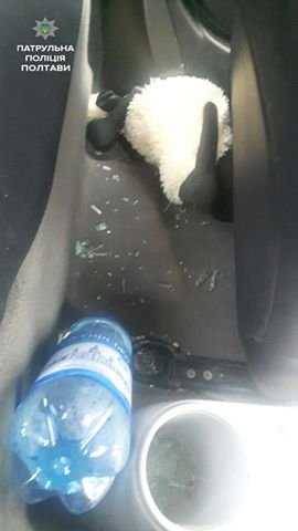 Прибувши на місце патрульні побачили розбите переднє ліве скло в автомобілі та матір із дитиною поряд.