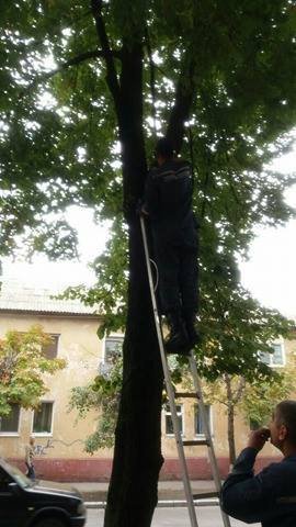 Працівники ДСНС за допомогою висувної драбини зняли пухнастика з липи.