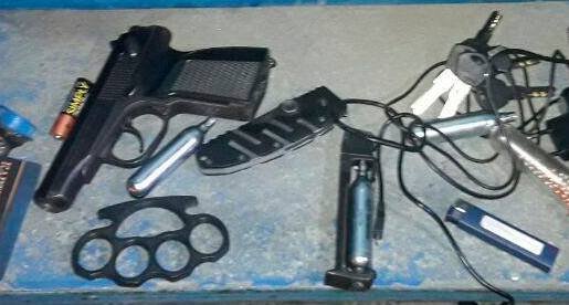 Однако, во время поверхностного осмотра полицейские нашли у него несколько пакетиков с наркотиками разных видов. Помимо пистолета у мужчины также был кастет и нож.