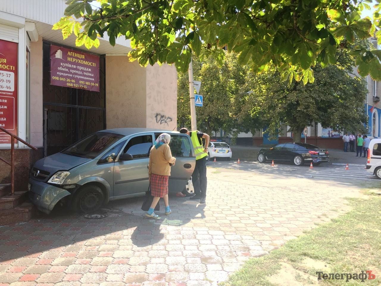 После столкновения, Opel «вылетел» на тротуар.