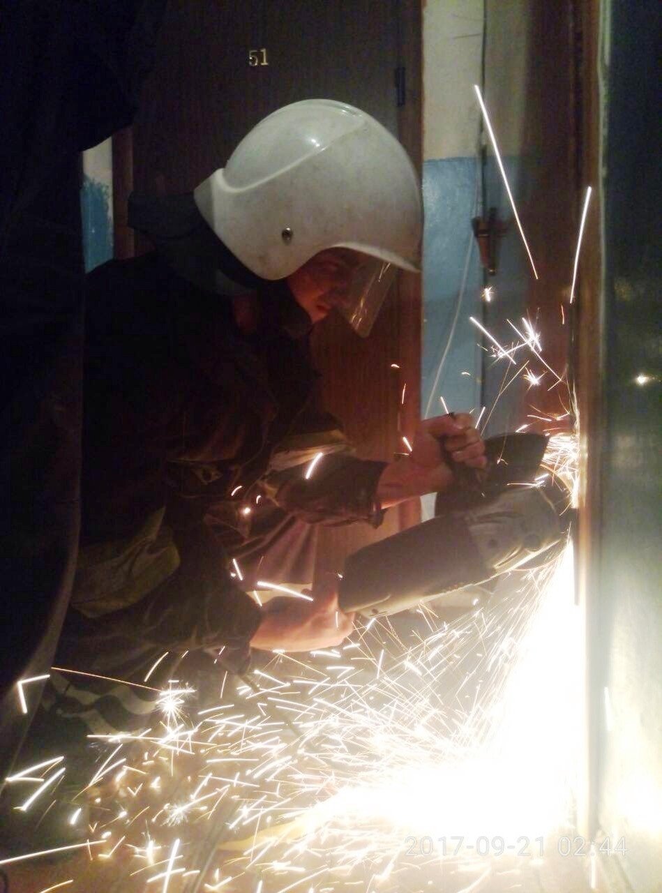 С помощью болгарки спасатели срезали петли и попали в помещение. Оказалось, что мальчик просто крепко спал.