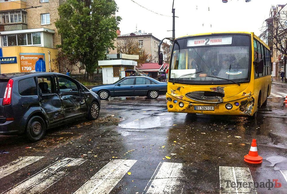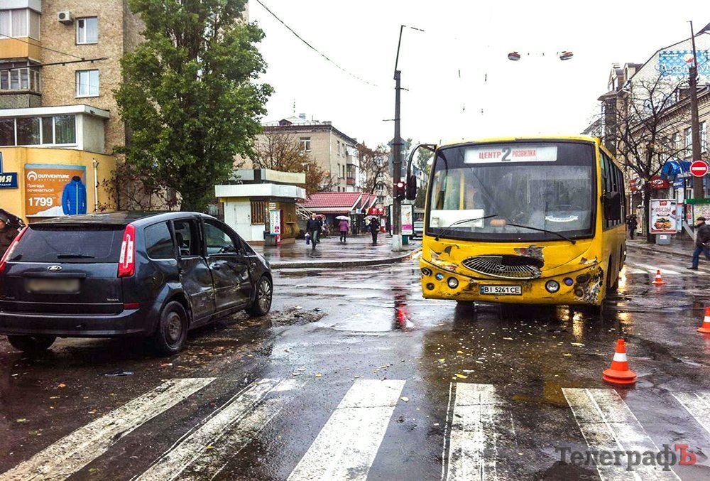 В центре Кременчуга столкнулись маршрутка и Ford. Как сообщают очевидцы, ДТП произошло на перекрестке улиц Небесной сотни и Игоря Сердюка 2 ноября около 9.00.