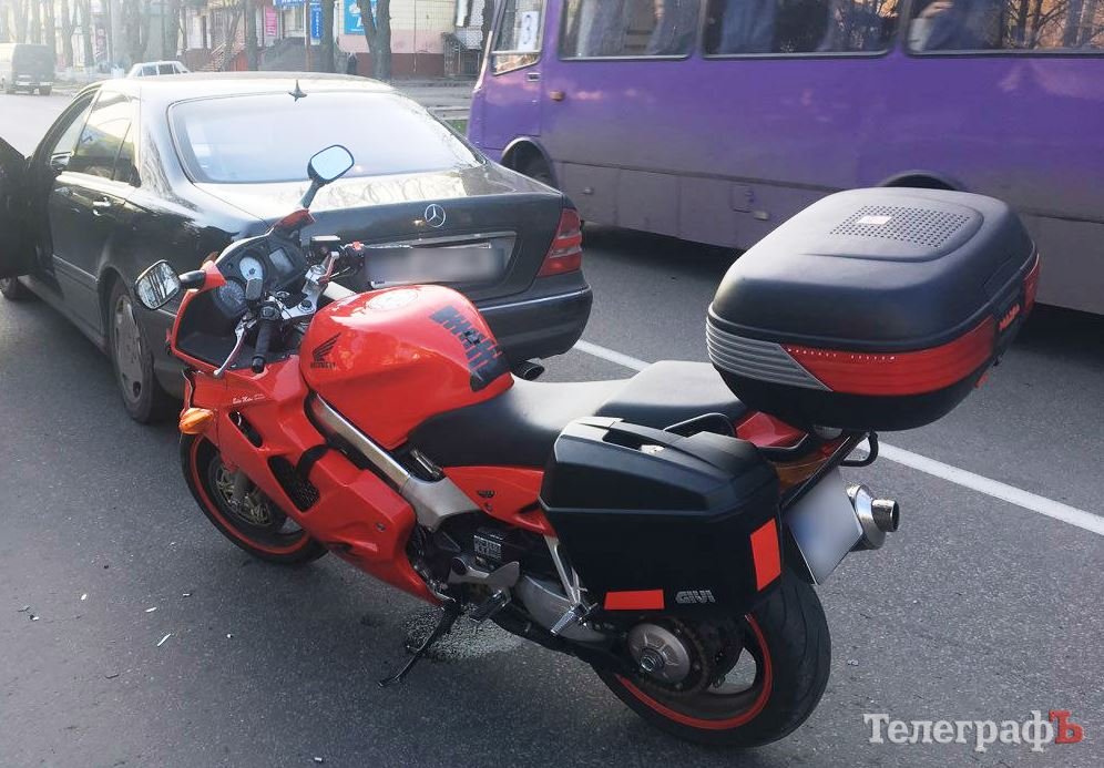 В Кременчуге мотоциклист «догнал» Mercedes. Как сообщает пресс-служба патрульной полиции, это произошло на проспекте Свободы между остановками «ДК КрАЗ» и «ул. Вадима Бойко».