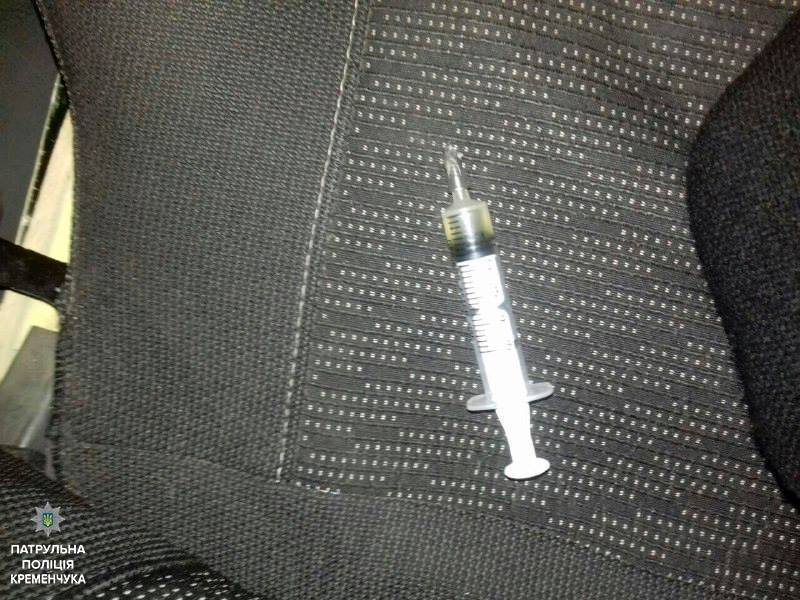 Еще один автомобиль Toyota остановили на ул. Игоря Сердюка, в котором находилось трое кременчужан. Во время поверхностного осмотра у одного из них нашли «травку» и шприц с неизвестным веществом. В багажнике машины обнаружили клетчатую сумку, внутри которой был dvd-плеер и сабвуфер. Задержанные также не смогли объяснить откуда у них эти вещи.