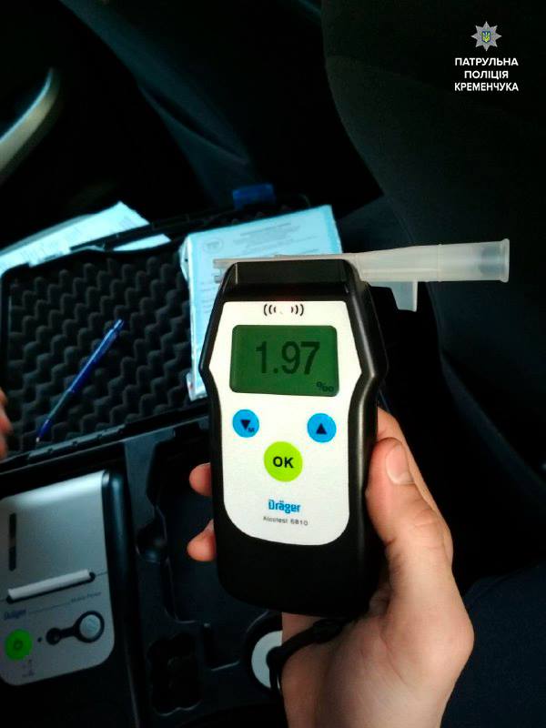Как сообщили в патрульной полиции Кременчуга, во время общения с водителем, инспекторы заметили, что он пьян. Мужчина согласился «продуться». Алкотестер показал, что водитель таки пьян – в его крови 1,97 промилле алкоголя.