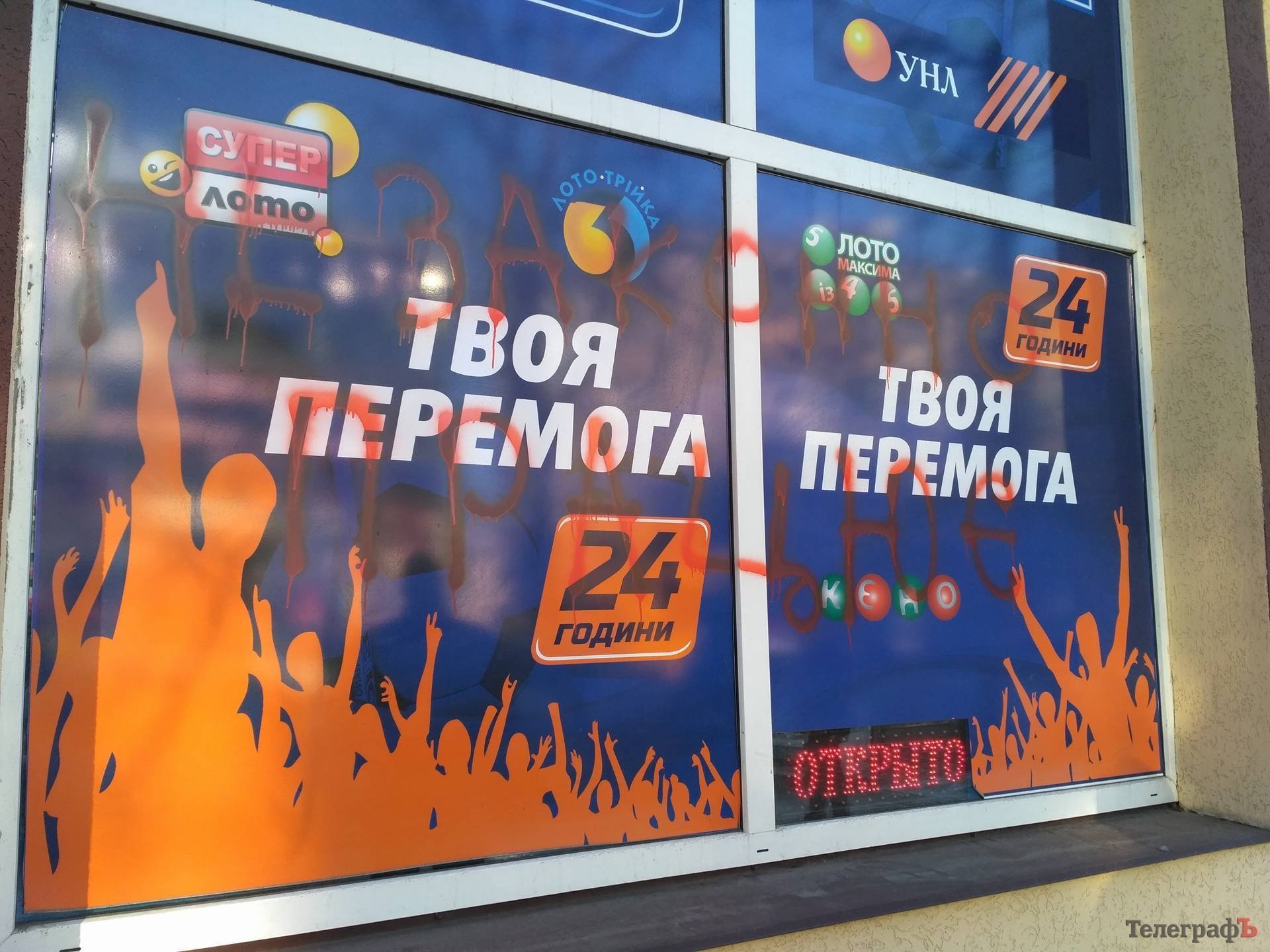 Как оказалось, незадолго до этого к «лохомаркету» подошли активисты и нанесли надпись «Незаконно работает». Видимо, именно от них заведение должны были защитить люди спортивного телосложения.