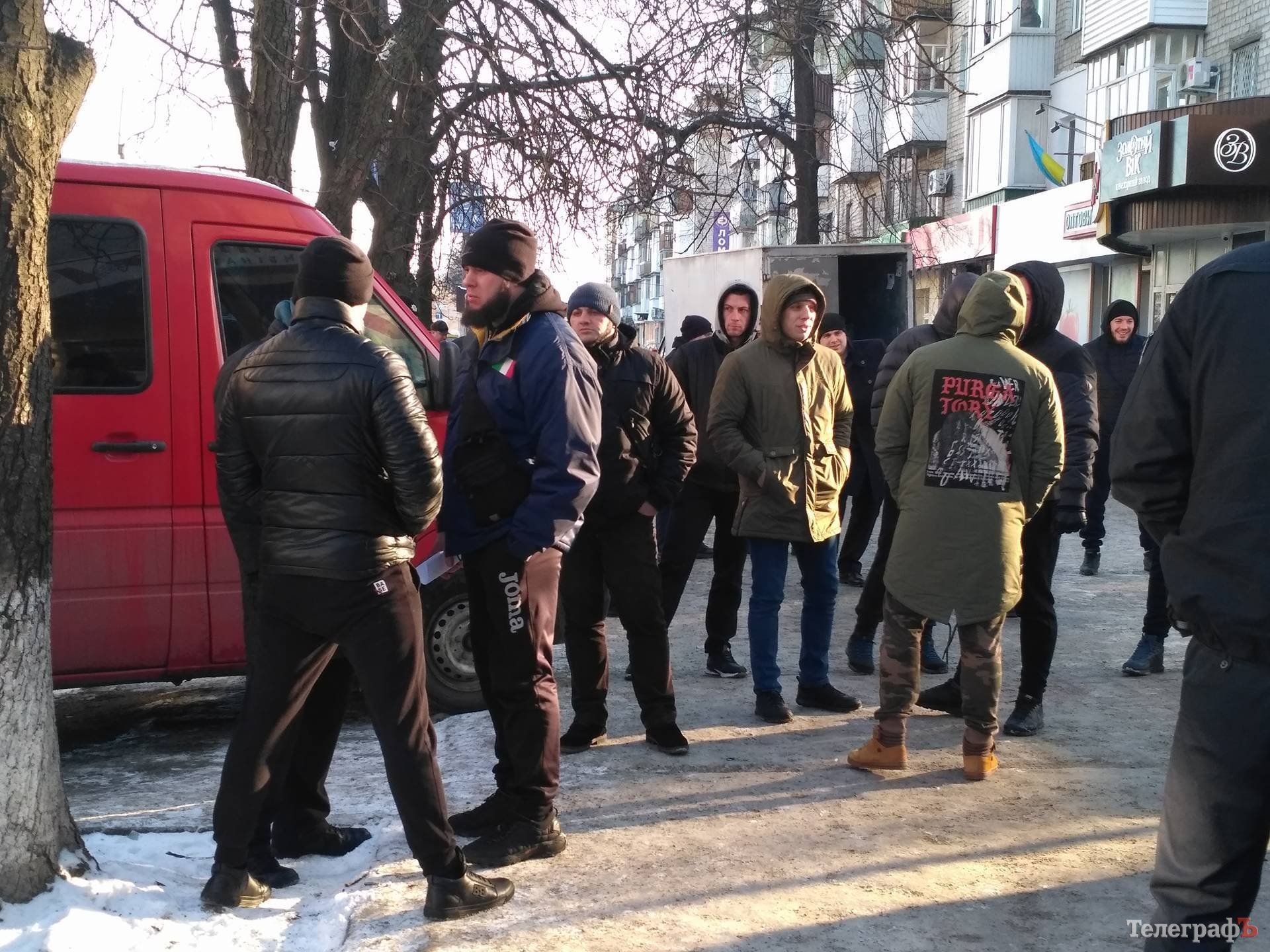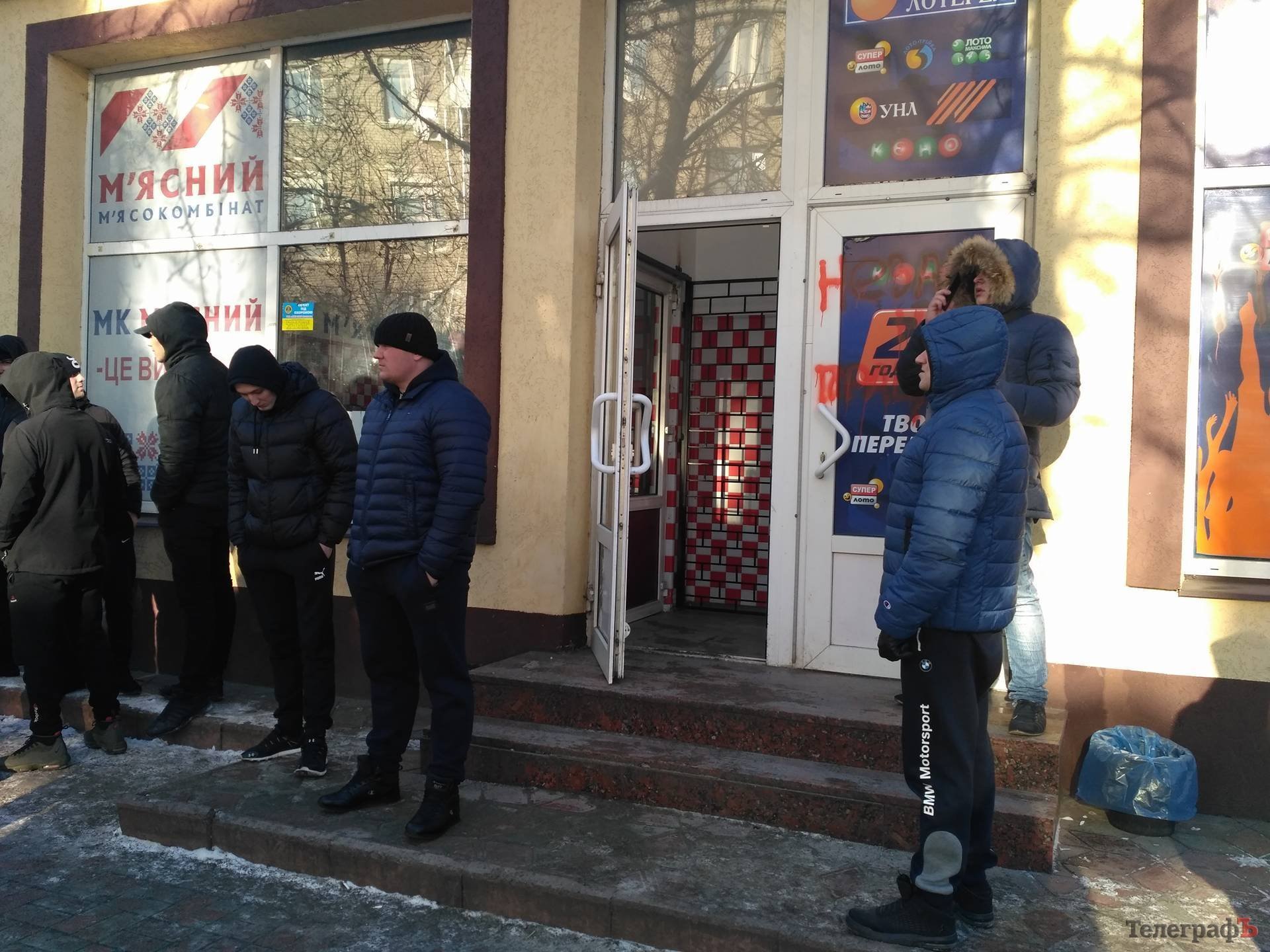 25 января на ул. Небесной сотни в Кременчуге, у одного из «лохомаркетов» собралась очередь из молодых людей спортивного телосложения. Как сообщают очевидцы, около 13.40 пришли минимум два десятка молодых людей. К ним подошли полицейские. Между ними состоялся разговор на повышенных тонах.