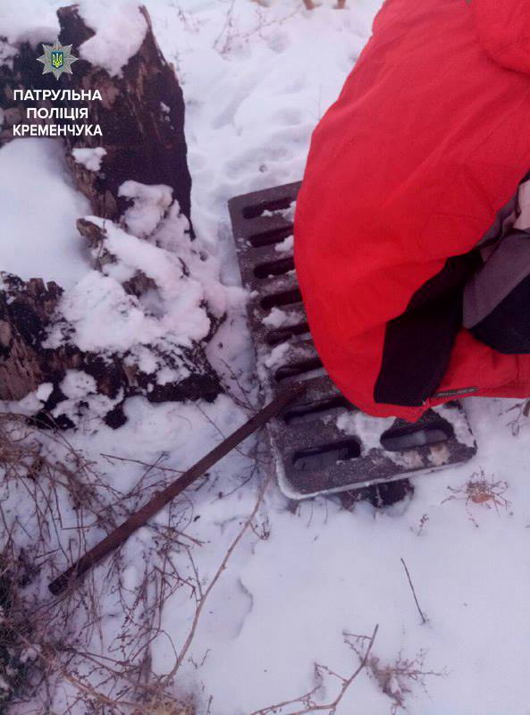 25 января в Кременчуге патрульные полицейские задержали подозрительного мужчину, у которого в руках была решётка ливневой канализации и лом. В пресс-службе патрульной полиции сообщили, что мужчина признался, что снял решётку в частном секторе Крюкова на перекрёстке ул. Димитрова и Трёх космонавтов.