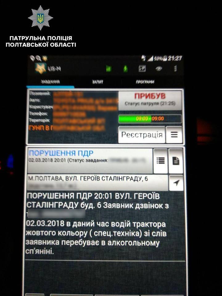 В Полтаве «синий» водитель ехал на синем экскаваторе. Как сообщает пресс-служба патрульной полиции Полтавской области, это произошло 2 марта в Полтаве.