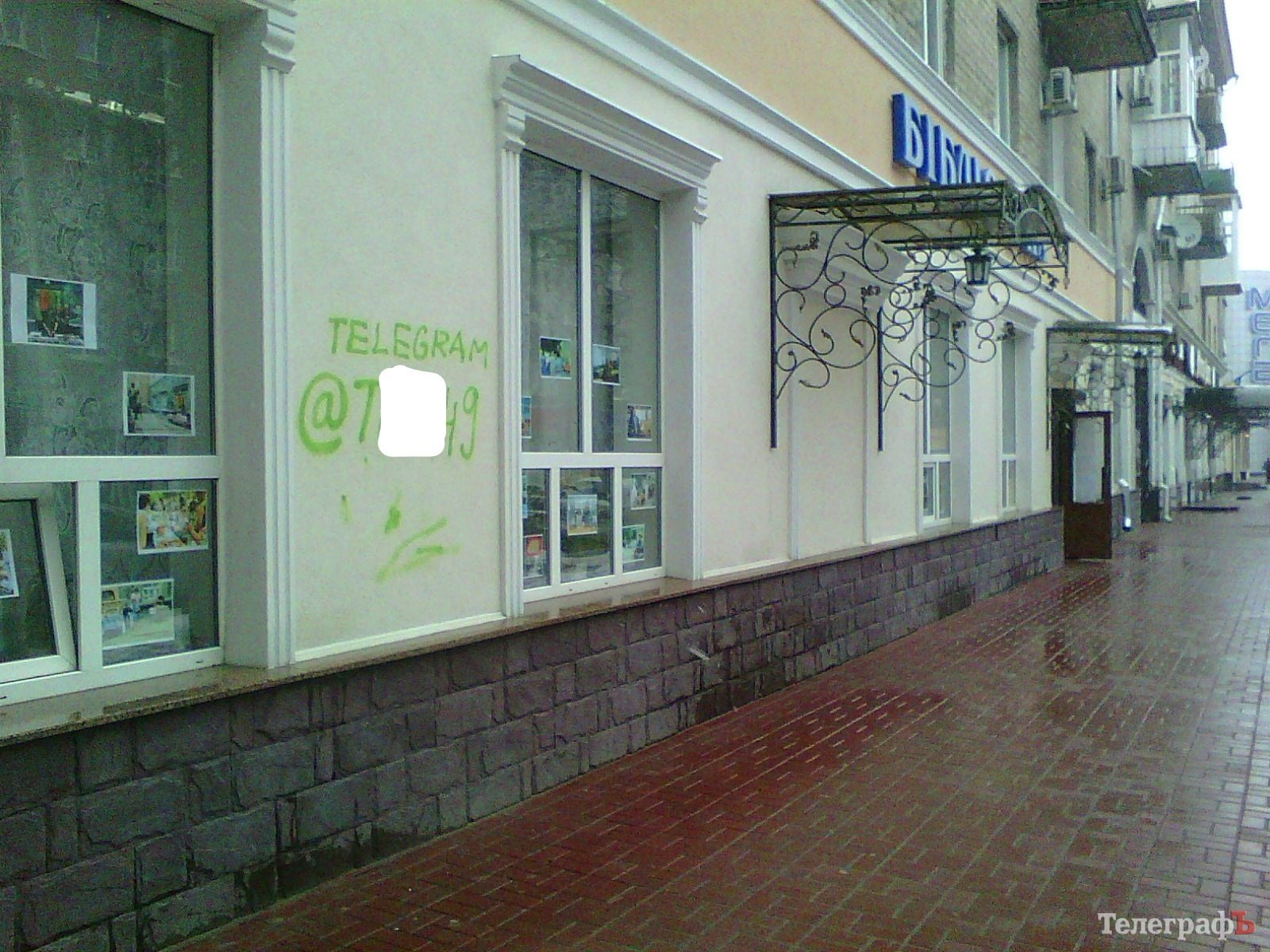 У Кременчуці в ніч на 15 березня невідомі спаплюжили новий фасад відділу абонементу ЦМБ ім. Горького на Соборній. Хтось зеленою фарбою написав на стіні адресу каналу у Telegram через який, ймовірно, продають наркотики.