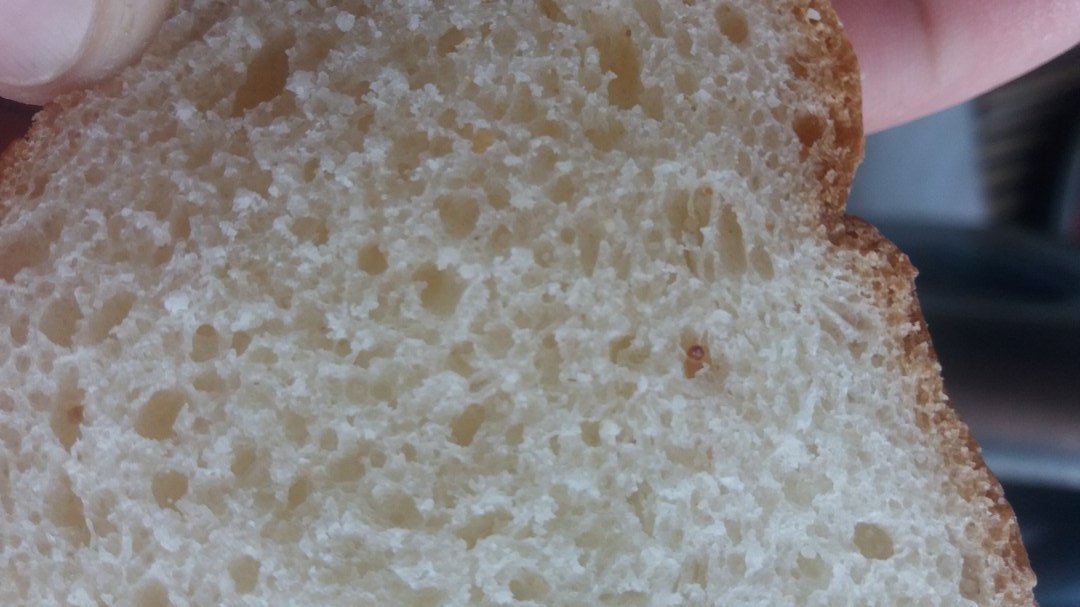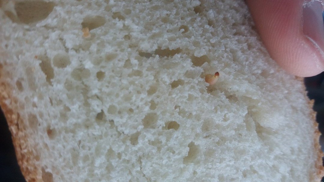 Купили батон 23-го числа. Еще вчера видели ЭТО, но не поняли сразу откуда. Утром нашли разгадку… Теперь, чтобы сьесть хлеб, прийдется поковыряться…