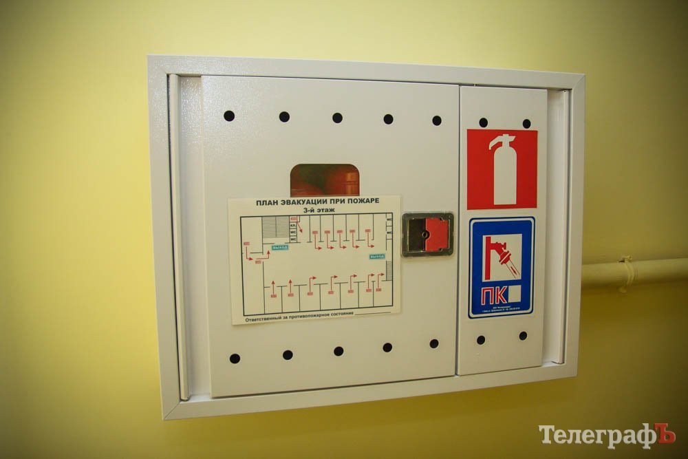 - на каждом этаже есть по 2 пожарных крана, а в них по 2 огнетушителя и пожарный рукав;