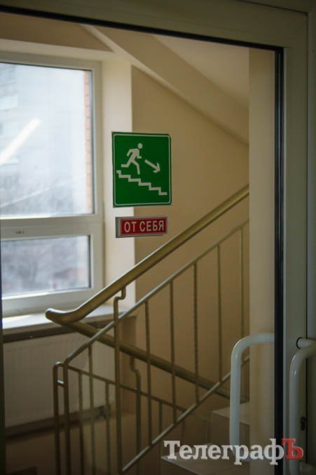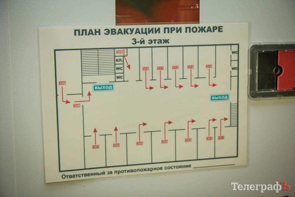 - на каждом этаже есть по 2 аварийных выхода – их хорошо видно из любого конца коридора;