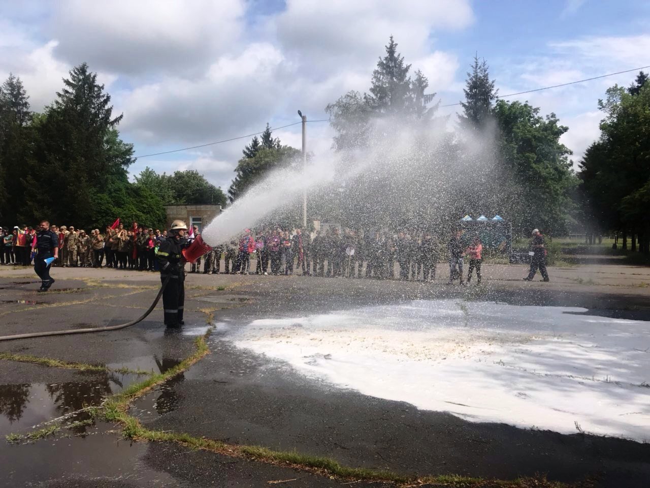 По традиции, спасатели устроили «пенное шоу».