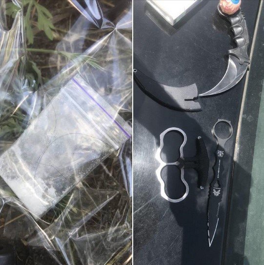 Во время поверхностной проверки у 28-летнего кременчужанина обнаружили предметы похожие на оружие, а у 27-летней кременчужанки пакет с вероятно наркотическим веществом.
