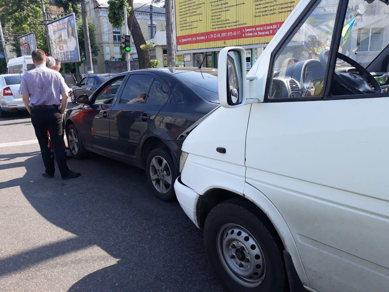 Mercedes Sprinter въехал в автомобиль Skoda Octavia, а тот, в свою очередь, в еще одну Skoda Octavia. В результате аварии, по предварительной информации, пострадало двое пассажиров маршрутки. Вызвали «скорую».