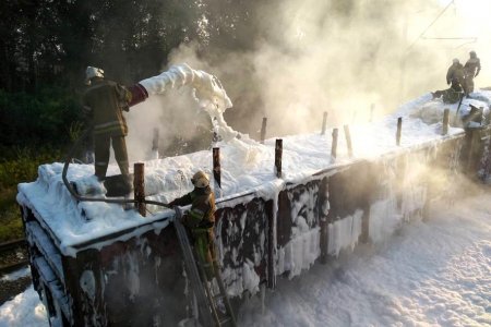 Для гасіння пожежі залучили 3 автоцистерни та 14 чоловік особового складу ДСНС, пожежний потяг залізничної станції «Гребінка» та 5 працівників Південної залізниці. Пожежу ліквідували.