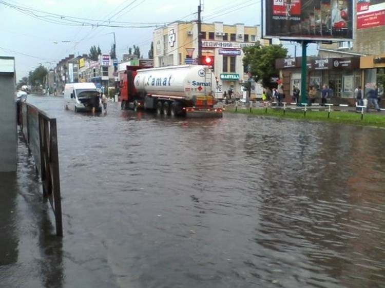 В связи с ливнем и традиционным затоплением улиц, в городе не ездят троллейбусы и маршрутки.