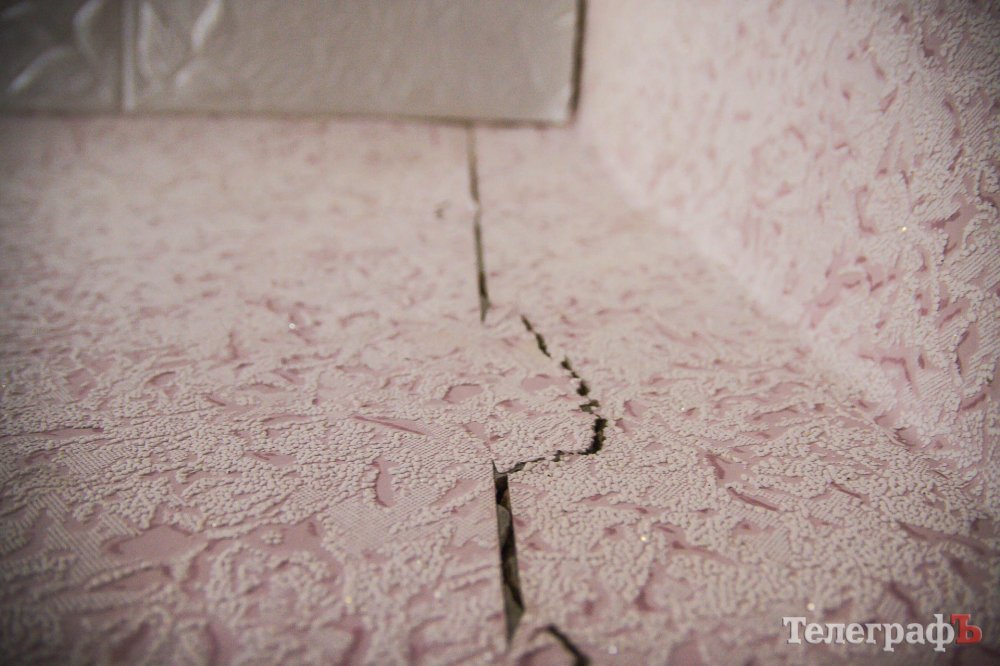 Соседям через стену (дом на нескольких хозяев) повезло больше. У них виниловые обои, которые потянулись и трещину не видно. Винят местные во всем фуры. Говорят что дом 1961 года постройки, и до этого никогда такого не было.